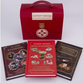 "Медицинский чемоданчик" для доктора- мужчины: 2 книги афоризмов, блокнот в кожаном футляре, ручка в сундучке