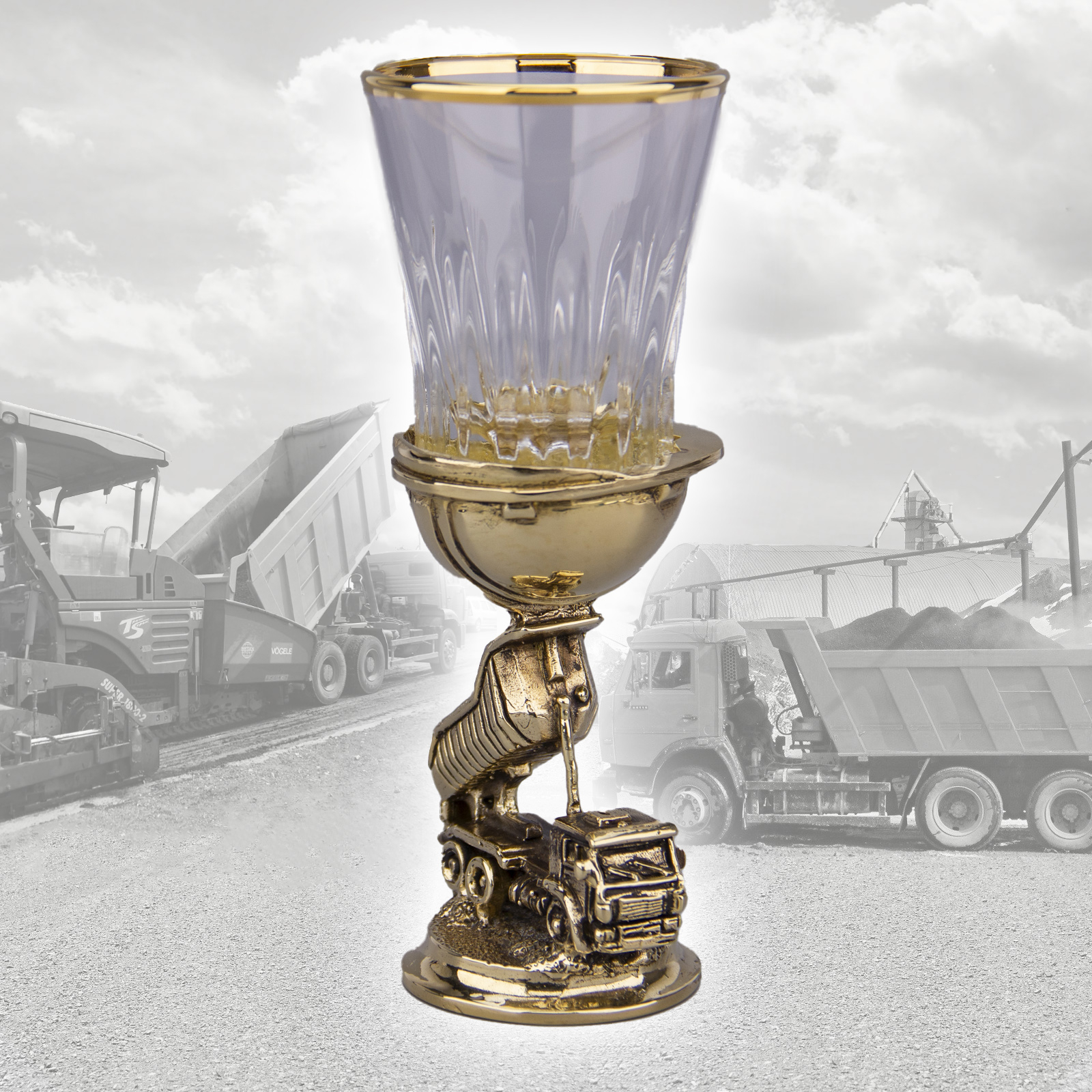 Материал стопки:чарка – стекло, декорированное по краю золотом; ножка – латунь, точное художественное литье.Размер стопки: высота стопки – 13,5 см, высота чарки – 6 см, диаметр – 5 см.Объем чарки – 45 мл.Стопка упакована в футляр-кейс из дизайнерского картона, с магнитным клапаном и ручкой – удобно носить, комфортно дарить!Размер футляра: 18*10*7 см.Возможно нанесение любого поздравительного текста методом лазерной гравировки на стеклянной чарке или на металлизированном шильде на футляр.Индивидуализация одной стопки – 300 рублей.Индивидуализированный шильд на футляр – 300 рублей. Возможна комплектация из 2-х, 3-х и 6-ти стопок.