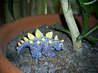 Соединяем детали поделки, добавляем глазки, зубцы на теле. Вот такой диплодок у нас получился в итоге.