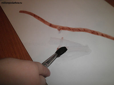 Помогаем ребенку изобразить веточку, обращая внимание на ее цвет.
