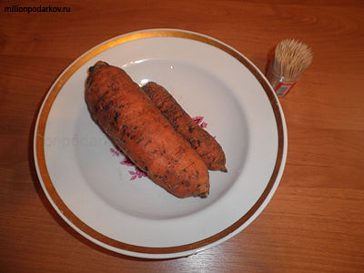 Для этого нужно почистить одну большую морковку и вставить зубочистку.