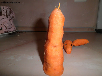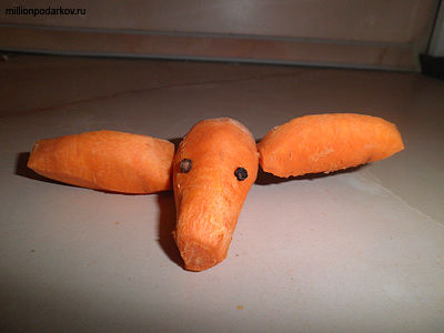 Аккуратно очищаем морковку, вырезая ушки и прикрепляя их с помощью зубочисток.
