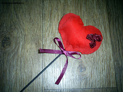 Приклеиваем к палочке сердце. Украшаем поделку атласными розочками. Вот такие поделки позволяет делать гофрированная бумага.