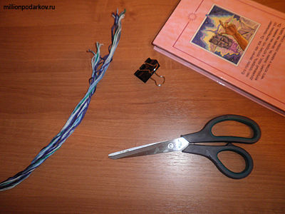 Для изготовления интересной поделки для детей нам понадобятся нитки мулие разных цветов, зажим для бумаг и ножницы.