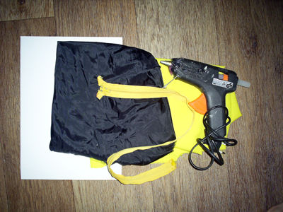 Давайте сделаем цветок из молнии. Для этого нам пригодится молния любого яркого цвета, например желтая, лист картона, ткань, клеящий горячий пистолет, ножницы, иголка и нитки.