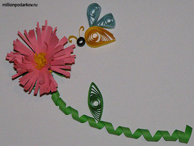 Новая поделка из бумаги "Гвоздика" изготовляется по технике квиллинг.Для этого нам потребуется клей, бумага для квиллинга и зубочистка.