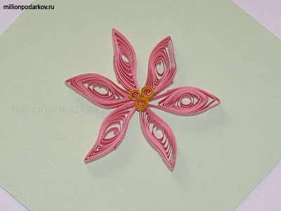 Оригинальная поделка из бумаги "Лилия" изготовляется по технике бумагокручения - квиллинг.Для этого нам потребуется клей, бумага для квиллинга и зубочистка.