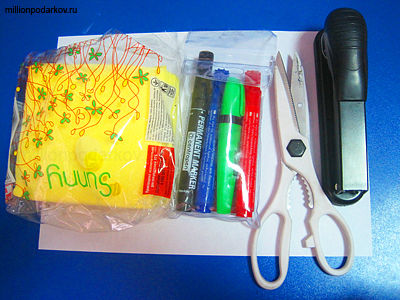 Приготовьте цветные фломастеры, белую бумагу для открытки и желтые салфетки. Если вы захотите украсить открытку розами -то салфетки будут розовыми.