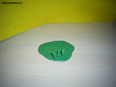 Из пластики зеленого цвета делаем лужайку с травкой. Также сушим ее подходящим способом.