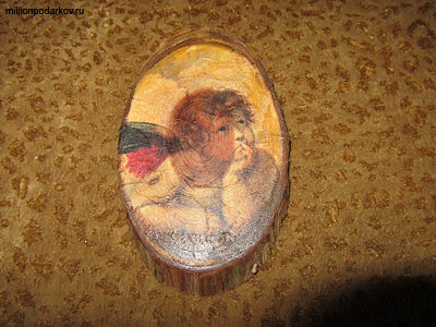 Сегодня мы расскажем, как делать поделки по дереву в технике декупаж. В этих целях можно с успехом использовать трехслойные салфетки с подходящим рисунком. Давайте сделаем вот такую картинку с ангелом.