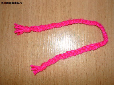 Перевязываем косичкой голову гусеницы. Кончики косички будут играть роль рожек.