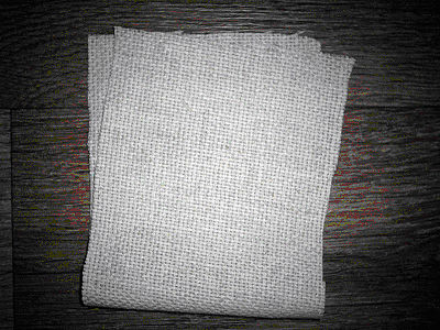 Для поделки нам понадобится льняная ткань, из которой выкраиваем деталь для будущего мешочка.