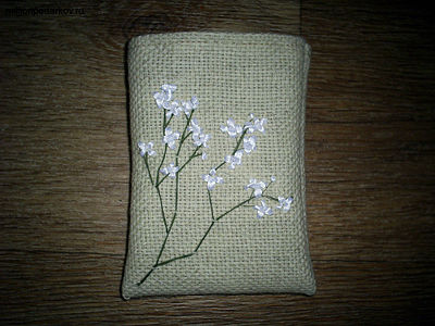 Поделка из атласных ленточек «Аромо-саше с вышивкой»