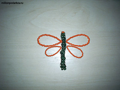 Итак, для того, чтобы сделать стрекозу, приготовьте бисер двух цветов – один цвет для туловища, а другой для крылышек.