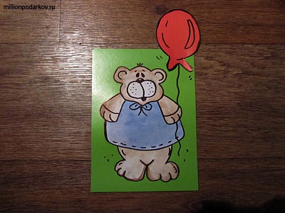Поделки из бумаги и картона могут быть смешными и забавными, как например, вот такой мишка с воздушным шариком. Сделанный в технике "аппликация", этот мишка принесет Вам много веселых и радостных минут. А изготовить Вы его можете вместе со своими детьми. В результате полученную картинку можно использовать в качестве красочной и оригинальной открытки.