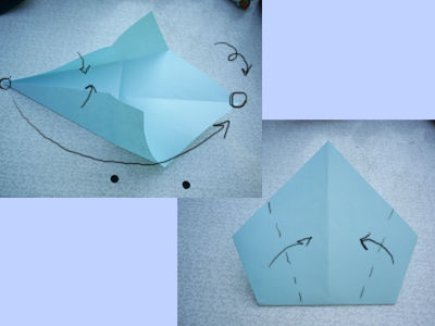 Складываем фигуру по линии, как на фото 1. Затем отгибаем парус вверх, а носик заворачиваем.