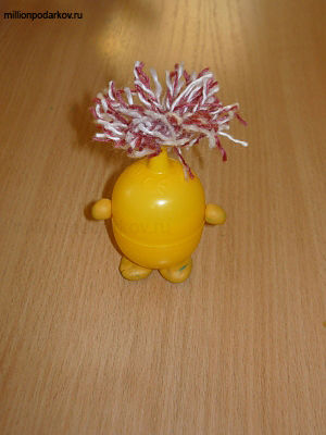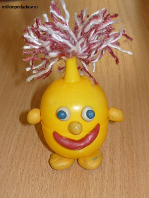 Поделка из футляра от большого Чупа-Чупса, пластилина и ниток "Желтый человечек"