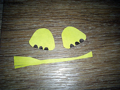Вырезаем из желтой цветной бумаги круг. Отрезаем от круга одну четверть. Склеиваем его в конус.