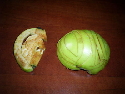 Разрежем яблоко на две половинки