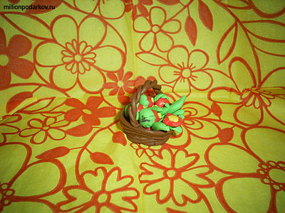 Поделка из пластилина для детей «Корзинка с цветами и ягодами»