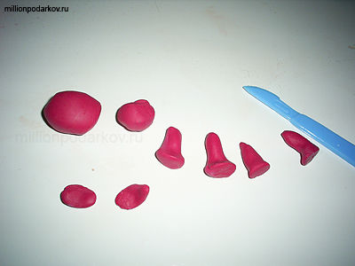 Из розового пластилина формируем голову, туловище, лапки и ушки овечки.