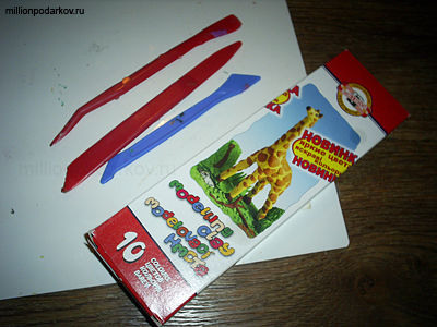 Для того чтобы сделать человечка, мы использовали такие материалы, как пластилин, доску для лепки, бамбуковый шампур и стеки.
