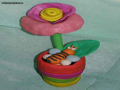 Поделка из пластилина "Цветочек в вазе"