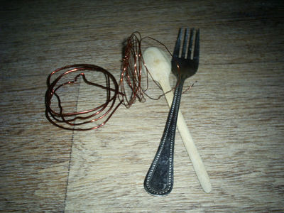Для изготовления поделки нам понадобится ложка или вилка из металла, пластмассы (материал зависит от толщины проволоки и того, какой вес она сможет выдержать), а также сама проволока.