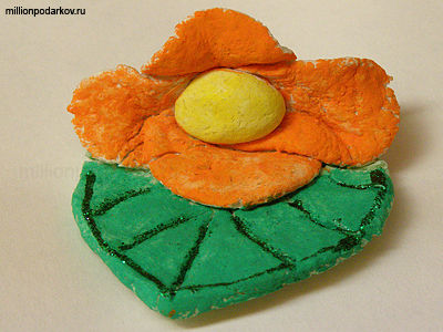 Поделка из солёного теста "Цветок" выполняется из уже знакомого нам солёного теста.Для изготовления теста нам потребуется мука, мелкая соль (всё в одинаковой пропорции) и вода с помощью которой мы будем замешивать тесто.