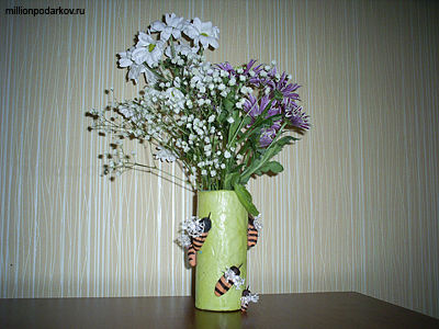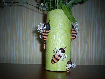 Поделка из соленого теста ваза «Ваза 'Пчелки на поляне'»