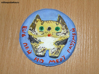 Хорошим подарком для человека желающего похудеть, будет магнит на холодильник с соответствующей надписью. Вы можете сделать такой шуточный презент из соленого теста.