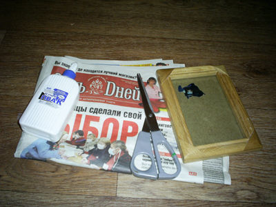 Итак, для декора рамочки нам понадобятся старые газеты, ножницы и клей ПВА.