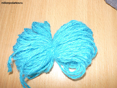 Наматываем нитки на руку, затем перетягиваем по-середине и завязываем.