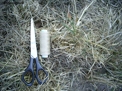 Для изготовления поделки нам понадобится сухая трава, ножницы, нитки, иголка.