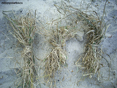 Срежьте или соберите пучки сухой травы и перевяжите их ниткой. Сделайте несколько вот таких пучков.