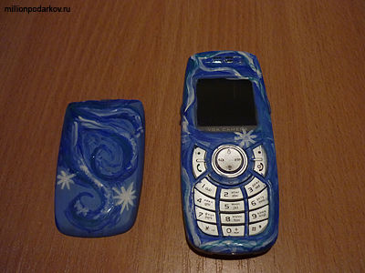 Наносим рисунок на телефон. После высыхания краски, рисунок, для прочности, можно покрыть лаком.