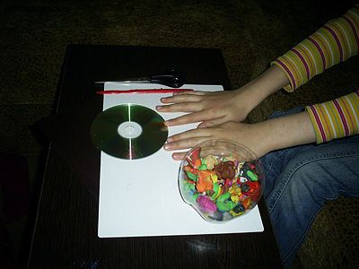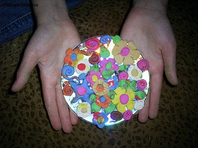 Сегодня мы будем делать поделки с детьми из пластилина на диске. В итоге у нас получится замечательная полянка. Такое изделие можно делать всей семьей, а затем использовать в качестве магнита на холодильник. Нашу поделку делала семилетняя девочка.