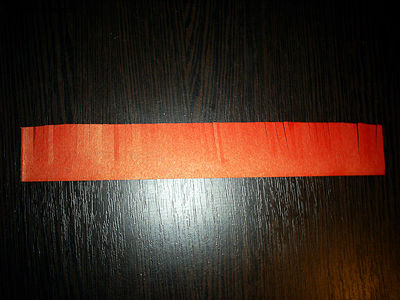 Отрежьте от листа цветной бумаги полоску шириной в 1-3 см. Чем шире будет полоска, тем больше по размеру получится цветок. Нарежьте деталь на тонкие полоски, не доходя до конца.