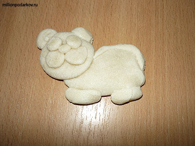 Поделка тигр из соленого теста лепится довольно просто. Слепите из теста 2 лепешечки и сложите их вместе так, чтобы получилась голова и тело. Затем слепите еще 4 маленьких лепешечки и сделайте тигру ушки и щечки, добавьте глаза, нос, лапы и хвост. А после сушки раскрасьте.