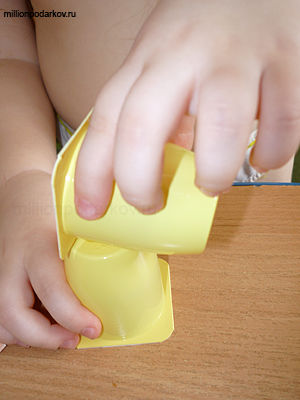 Соедините стаканчики с помощью пластилина