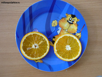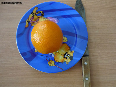 Для этой поделки вам потребуется апельсин, нож, тарелка и немного фантазии.