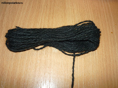 Оберните нитками руку несколько раз. Потом аккуратно снимите нитки.