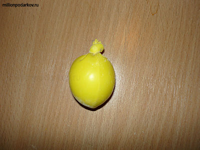 Насыпаем крахмал внутрь шарика. Завязываем шарик на узелок.