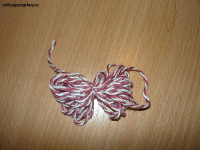 Наматываем нитки на 4 пальца, затем снимаем и перевязываем по середине. Затем расстригаем нитки, чтобы распушить "причёску".