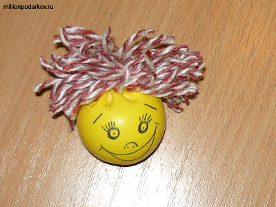 Привязываем прическу к узелку. Рисуем ручкой рожицу. Весёлая "Чудо-мнучка" антистресс готова!