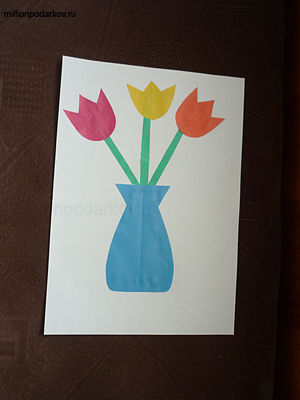 Аккуратно вместе с ребенком приклейте все части поделки к листу. "Аппликация тюльпаны" готова!