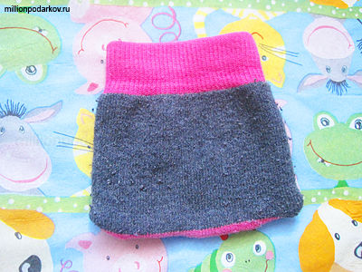 Приготовим носочек. лучше, если верхняя часть будет без мелкого рисунка, однотонной, резиночка носка пусть будет цвета отличного от остальной части.