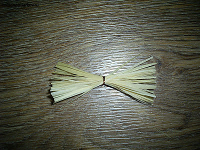 Теперь делаем из керамики или пластики два шарика для головы и носа. Склеиваем их вместе. Декорируем лицо усами. Их мы делаем из щетки для побелки, отрезая кусочек сухой травы и связывая его по середине проволочкой.