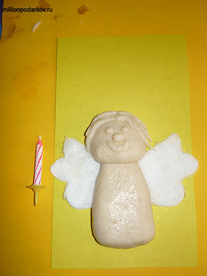 Когда поделка высохла, раскрашиваем её. Свечку можно подклеить с помощью клея. Изготовление поделки и сувенира из соленого теста законченно.
