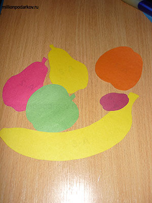 Рисуем блюдо и дополнительные элементы. Поделки из бумаги аппликация "Натюрморт" закончена.